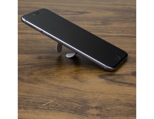 Suporte universal flexível para celular. Material de silicone, sua fixação é feita pelos adesivos laterais.