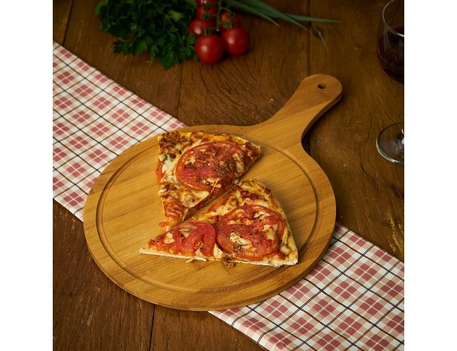 Tábua de bambu grande com canaleta e cabo.