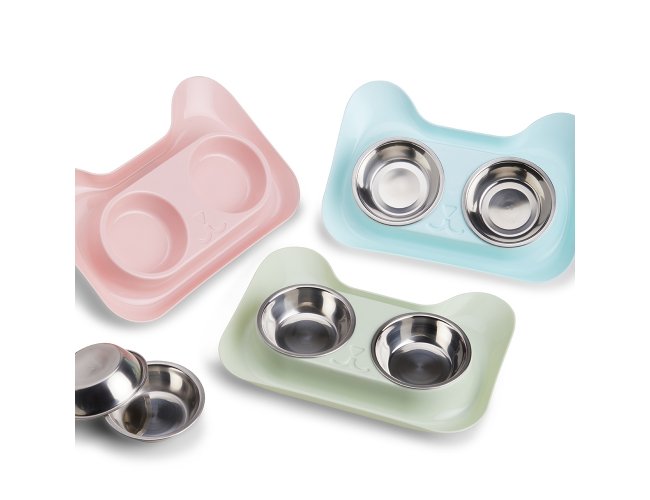Conjunto de tigela dupla de aço inoxidável 170ml para animais de estimação.