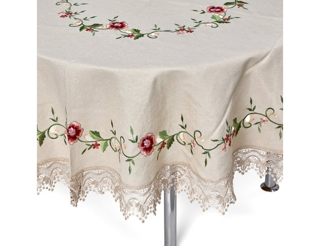 Toalha de Mesa Redonda em tecido 100% Poliéster.