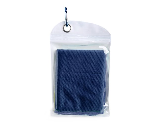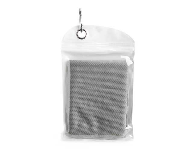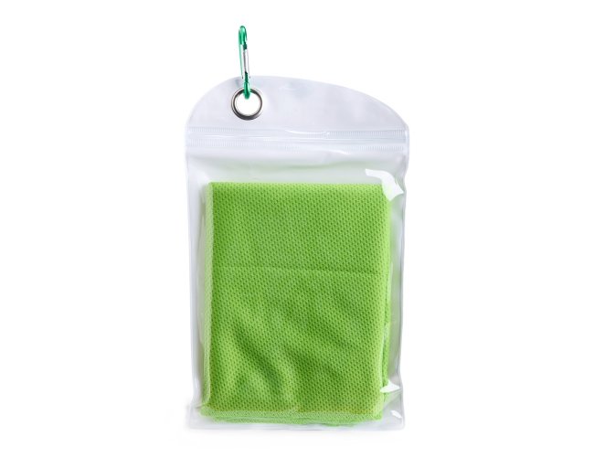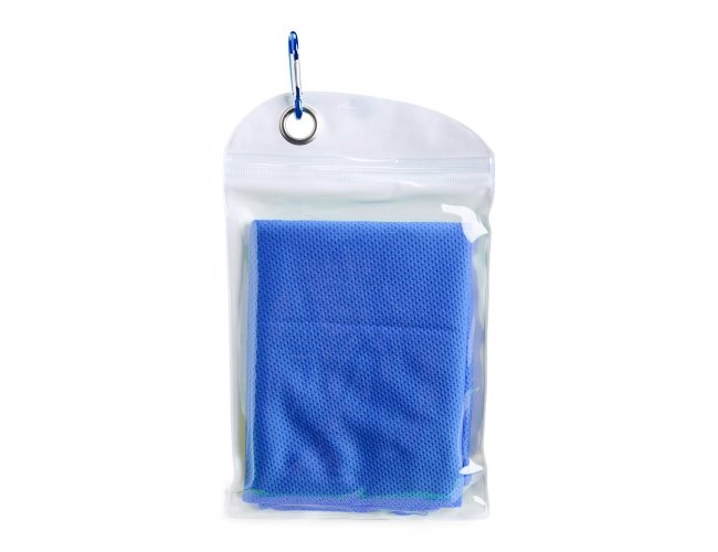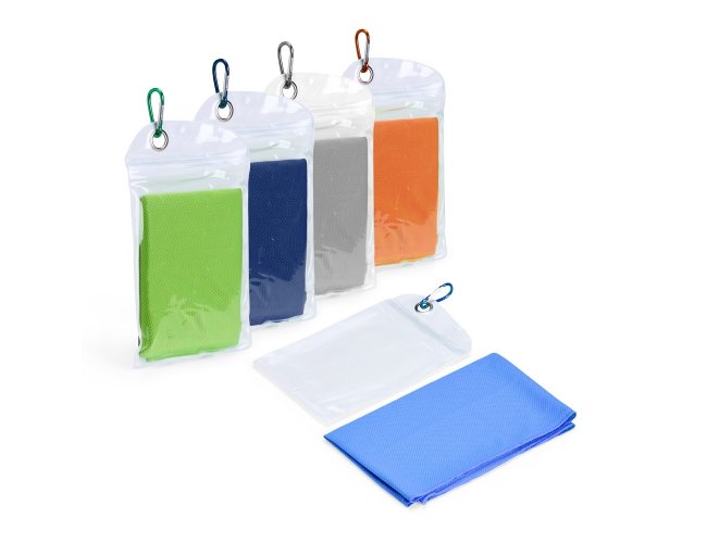 Uma toalha prática ideal para aliviar o calor durante atividades físicas em qualquer lugar. Seu uso é simples: basta molhar a toalha, torcer levemente para remover o excesso de água e pronto, você terá uma tolha macia e refrescante para levar ao pescoço e diminuir a sensação desconfortável de calor enquanto ela estiver molhada. A toalha vem em uma embalagem de PVC compacta com um mosquetão para ser facilmente transportada. Precaução de uso: lavar à mão com água fria e sabão neutro.