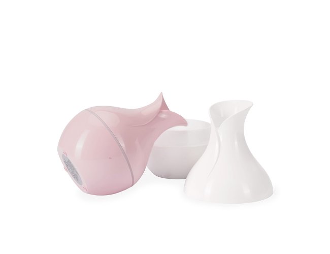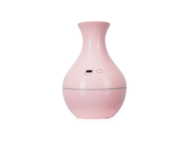 Umidificador de ar feito em plástico, com design inspirado em vaso, iluminação LED e reservatório de água com capacidade de até 200ml. Apresenta dois modos de névoa: o contínuo e intermitente. Funciona apenas quando conectado a uma fonte de energia por meio de sua entrada USB-C. Acompanha filtro de algodão e cabo USB-C.